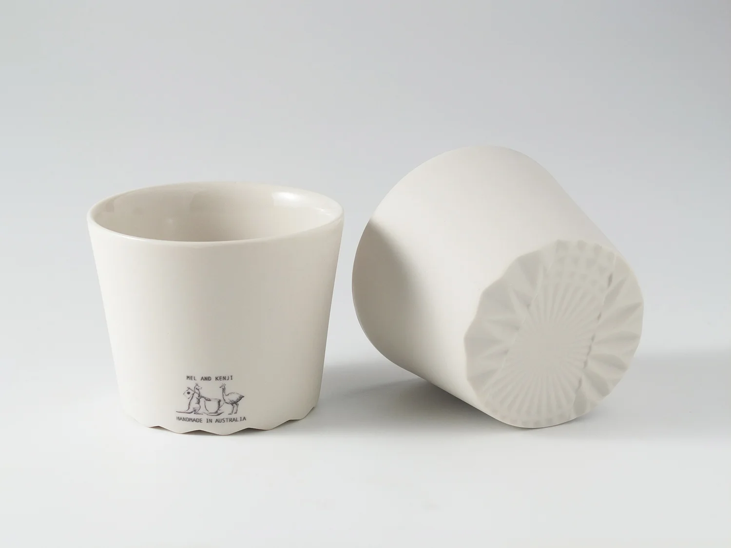 The Kids Cup Project is a collaboration between Mel Robson and children of the Alice Springs community. Each year Mel works with kids from the local community to create a range of porcelain cups and beakers. All proceeds are donated to a local charity chosen by the kids involved. Since 2012 they have donated funds to Riding for the Disabled, the Alice Springs branch of the RSPCA and the Purple House Dialysis Centre.